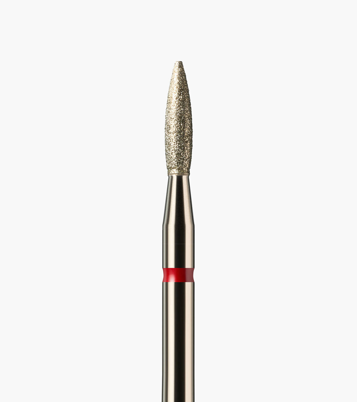 Tipo: Fresa adiamantada (revestida com diamante industrial de alta durabilidade) Formato: Chama / Flame – ideal para limpeza lateral e sulco subcuticular Granulação: Fina Cor da marcação: Vermelho – abrasividade suave Indicação: Manicure combinada, manicure russa, preparação de cutícula e remoção de pele morta Zonas de atuação: Áreas laterais da unha, margem proximal e sulco Compatibilidade: Encaixe universal – compatível com a maioria das micromotoras profissionais Esterilizável: Sim – resistente à esterilização e desinfeção