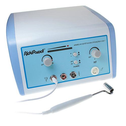 Através da emissão de impulsos elétricos suaves e controlados, este equipamento: -Estimula a circulação sanguínea, acelerando a oxigenação celular e a regeneração dos tecidos; -Ajuda a prevenir infeções, criando um ambiente desfavorável para bactérias e fungos; -Reduz a inflamação e vermelhidão em zonas mais sensíveis ou sensibilizadas após o tratamento; -Promove uma cicatrização mais rápida de microlesões, especialmente útil após o uso de ponteiras ou limas; -Proporciona uma sensação de frescor e alívio imediato, ideal para finalizar tratamentos intensivos. Este aparelho é um verdadeiro aliado no teu espaço profissional – seguro, versátil e eficaz. Função 1: Alta-frequência com elétrodos específicos para áreas delicadas (dedos, calcanhares, contornos); Função 2: Corrente galvânica. Indicada para tratamentos de rosto, a corrente galvânica atua como um condutor de princípios ativos, permitindo que ingredientes cosméticos penetrem nas camadas mais profundas da pele. Compacto e ergonómico, ideal para qualquer ambiente profissional; Fácil de higienizar e manter; Inclui elétrodos de alta-frequência e corrente galvãnica.